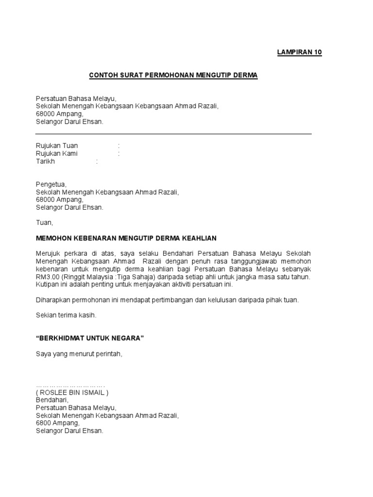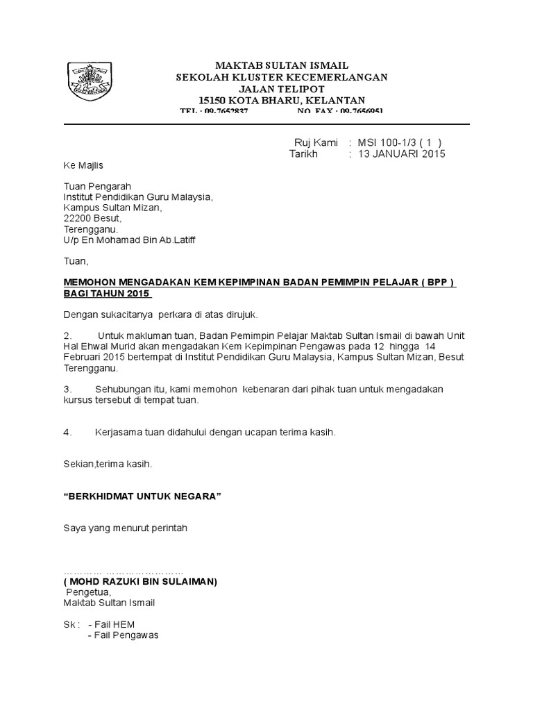 Contoh Surat Rasmi Permohonan Aktiviti Kelab Dan Persatuan Bahasa Melayu Pdf